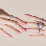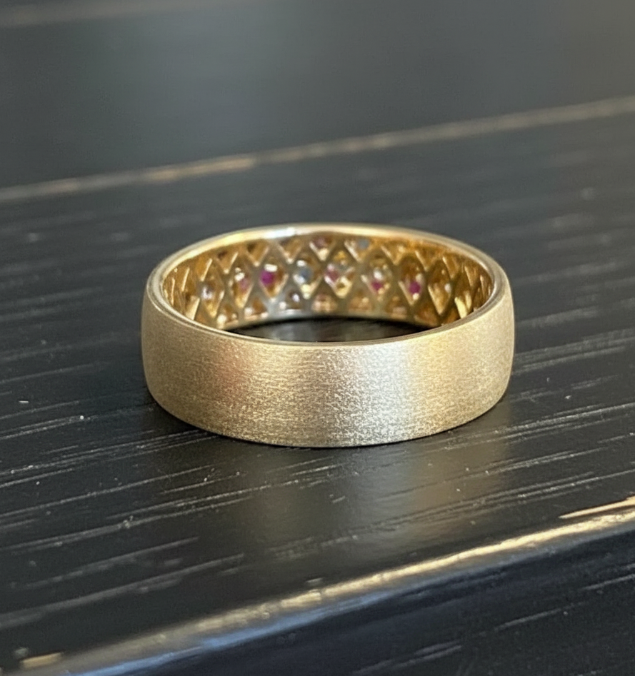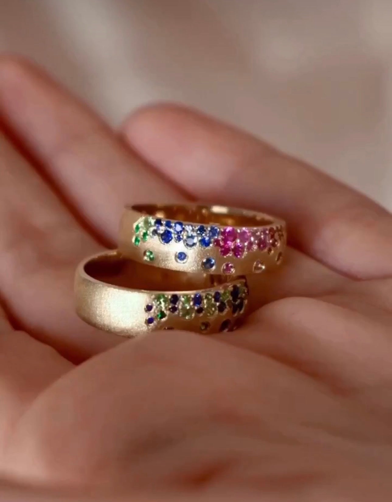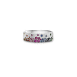 Designed to be both modern and enduring, this band layers beautifully with other pieces from the collection or stands alone as a quiet statement of individuality. Its clean curves and organic gemstone placement evoke effortless sophistication—an everyday reminder of color, balance, and joy.