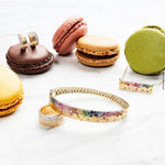 Designed for an effortless fit at 7-inch circumference, the bangle’s smooth inner curvature ensures comfort, while its sculptural form makes it both timeless and bold. Whether stacked with other Cleo & Me treasures or worn solo as your signature piece, the Scattered Rainbow Signature Bangle radiates modern elegance and joyful color in perfect harmony.