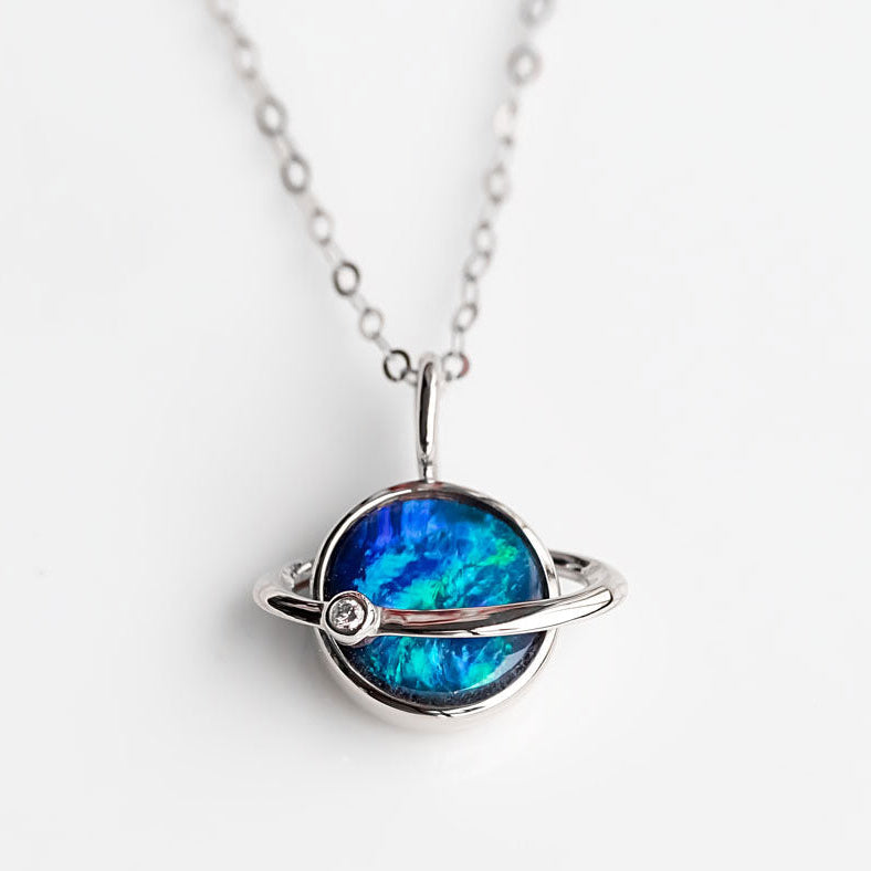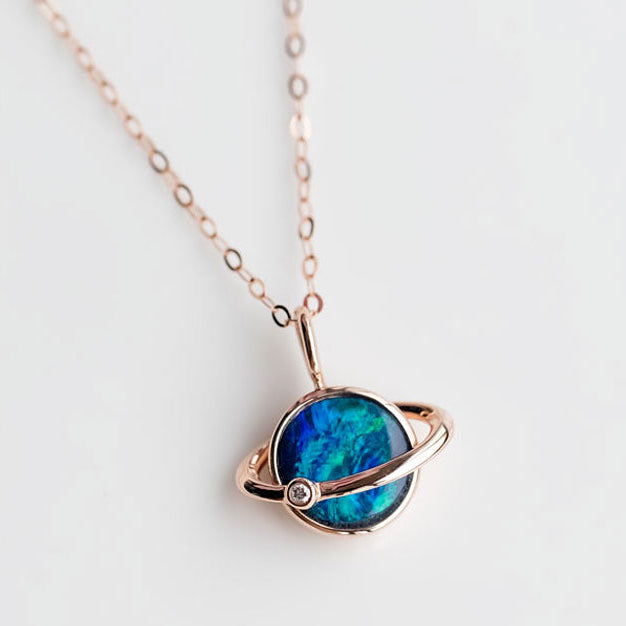 Earth-Moon Australian Doublet Opal & Diamond in 18K Rose Gold Pendant Necklace.