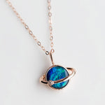 Earth Moon Doublet Opal & Diamond Pendant Necklace in 18K Rose Gold