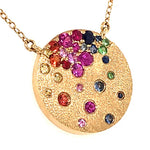 Sapphire Scattered Rainbow Disc Necklace in 14K Gold