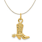 14k Yellow Gold 2D Cowboy Boot with Spur Necklace
