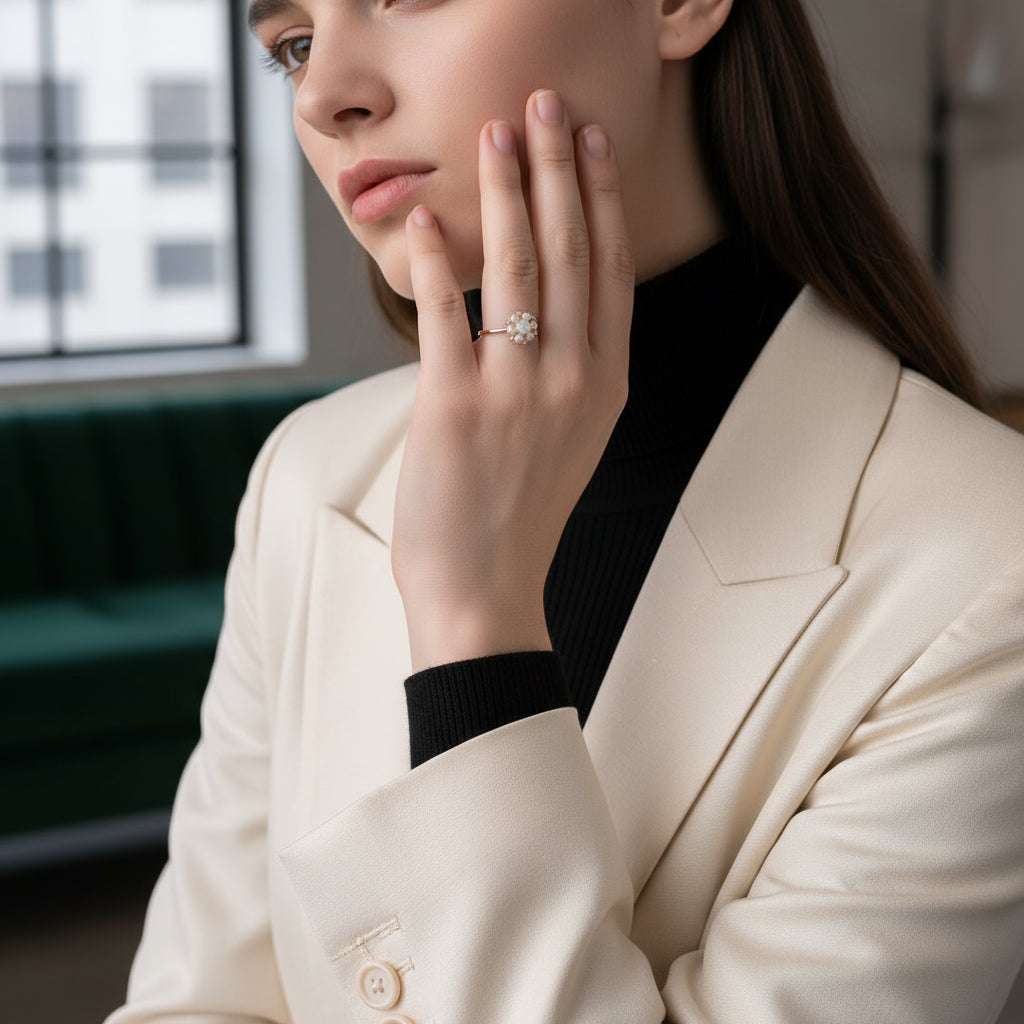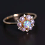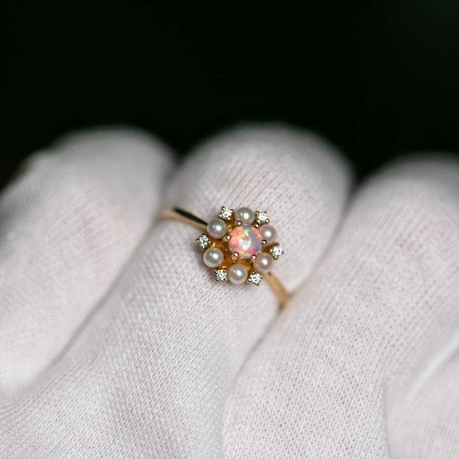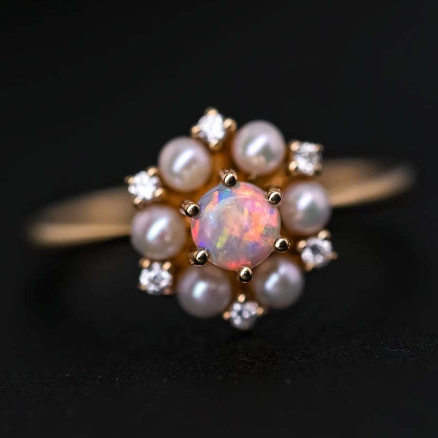 18K Yellow Gold Opal Ring with Pearls and Diamonds