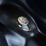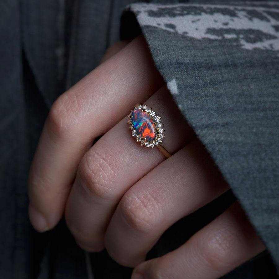 Certificated Black Opal Halo Diamond Ring in 18K Gold