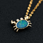 Charming Crab Pendant Necklace in Australian Doublet Opal with Diamond in 18K Yellow Gold
