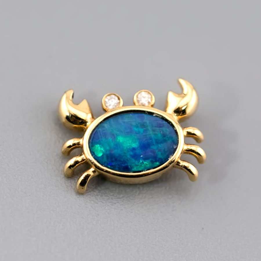 Charming Crab Australian Doublet Opal with Diamond in 18K Yellow Gold.