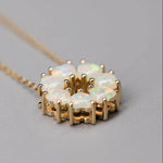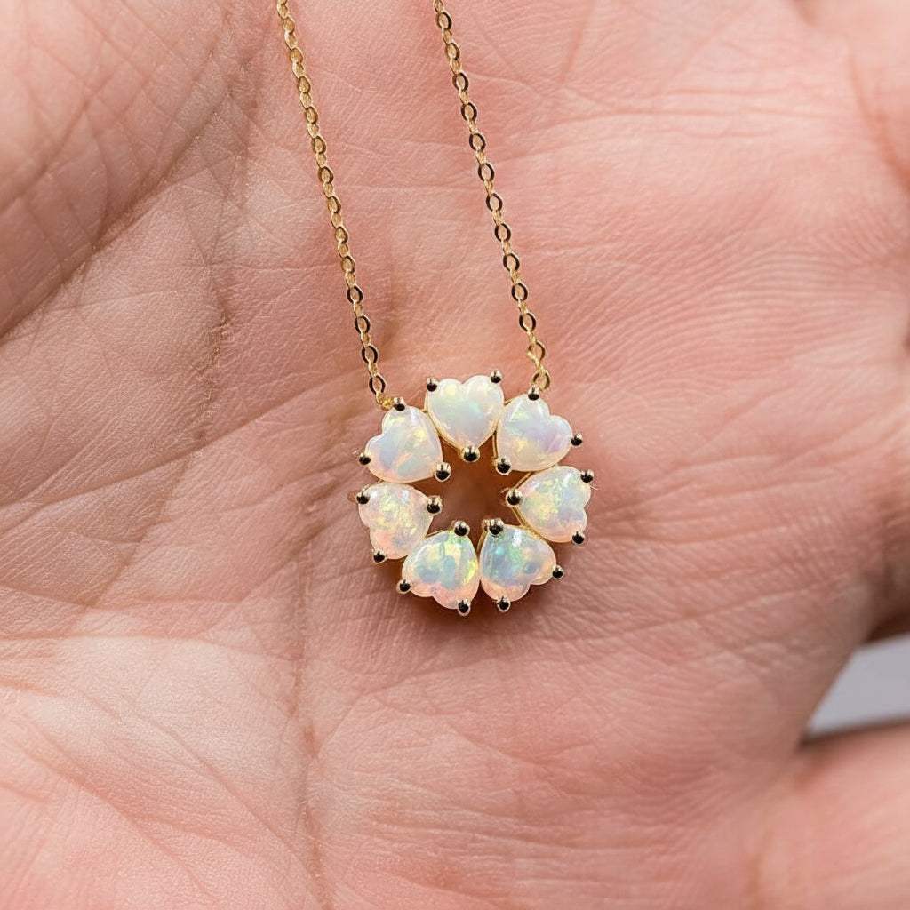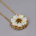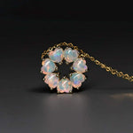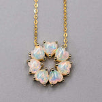 Eternity Heart Australian Crystal Opal Circle Pendant Necklace in 14K Yellow Gold