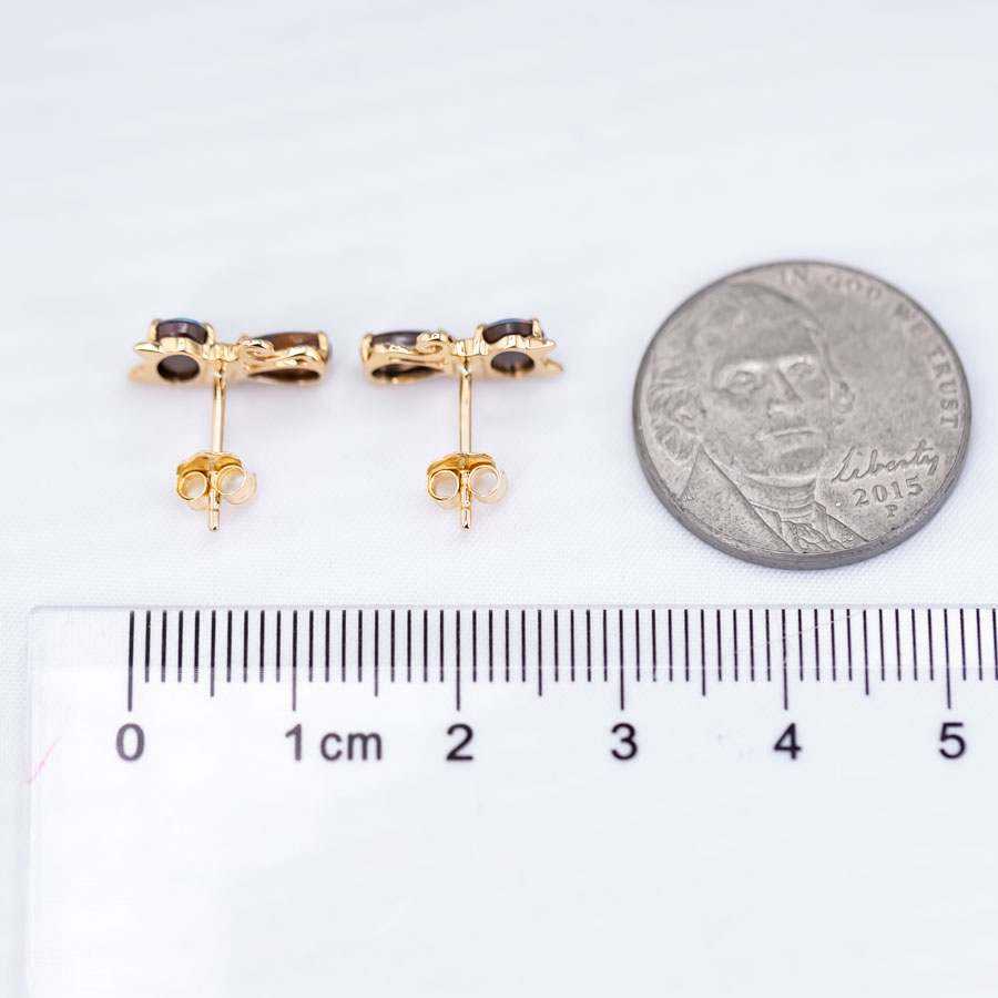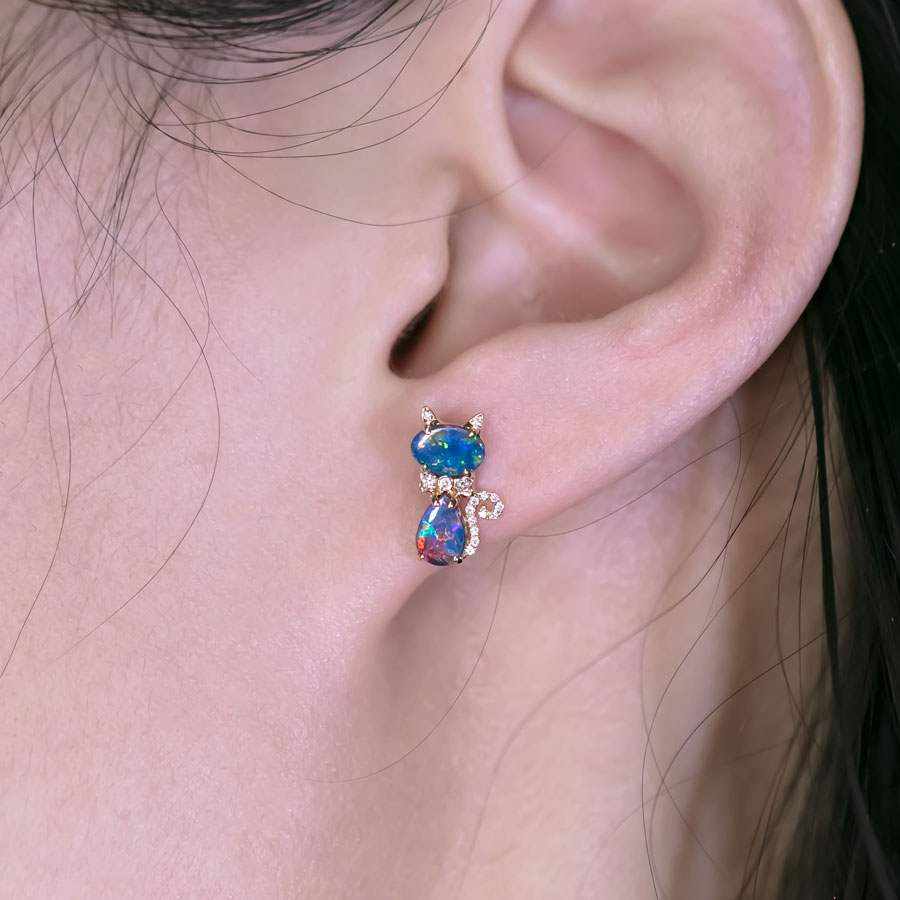 Cute Kitty or Kitten Cat Shape in Australian Doublet Opal and Diamond Stud Earrings in 18K Yellow Gold.