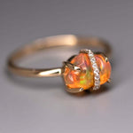 Diamond Ribbon Wrapped Fire Opal Ring in 18K Yellow Gold