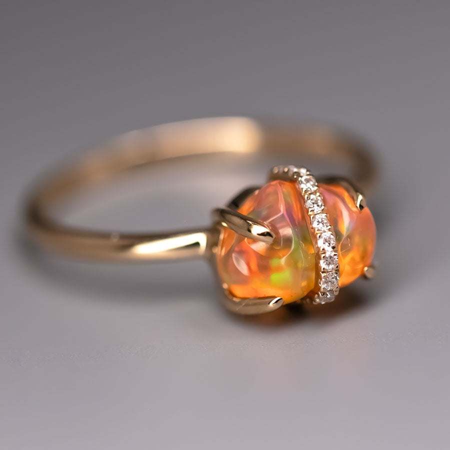 Opal—the queen of gemstones, is one of the most beautiful and rarest gemstones on earth. Every piece of opals has its colors and patterns, which is perfect for designers to create unique engagement rings for someone extra special. We use 100% Natural & Ethically opal stones (NO synthetics or imitations).