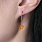 Diamond Ribbon Wrapped Fire Opal Ruby Drop Earrings in 18K Yellow Gold