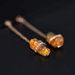 Diamond Ribbon Wrapped Mexican Fire Opal Ruby Drop Earrings in 18K Yellow Gold