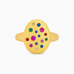 Each gemstone catches the eye with its own natural brilliance—symbolizing individuality, creativity, and joy. Designed for both comfort and sophistication, the curved form hugs the finger beautifully, creating a sculptural centerpiece that feels as radiant as it looks. Whether worn solo or paired with other Cleo & Me favorites, this ring effortlessly bridges everyday wear and luminous artistry.