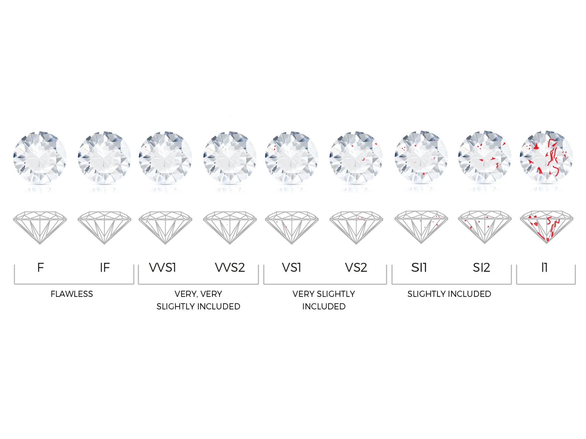 refers to the absence of internal inclusions and surface blemishes in a diamond. Inclusions naturally occur during the diamond formation process.