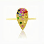 Sapphire Scattered Rainbow Pear Ring in 14K Gold