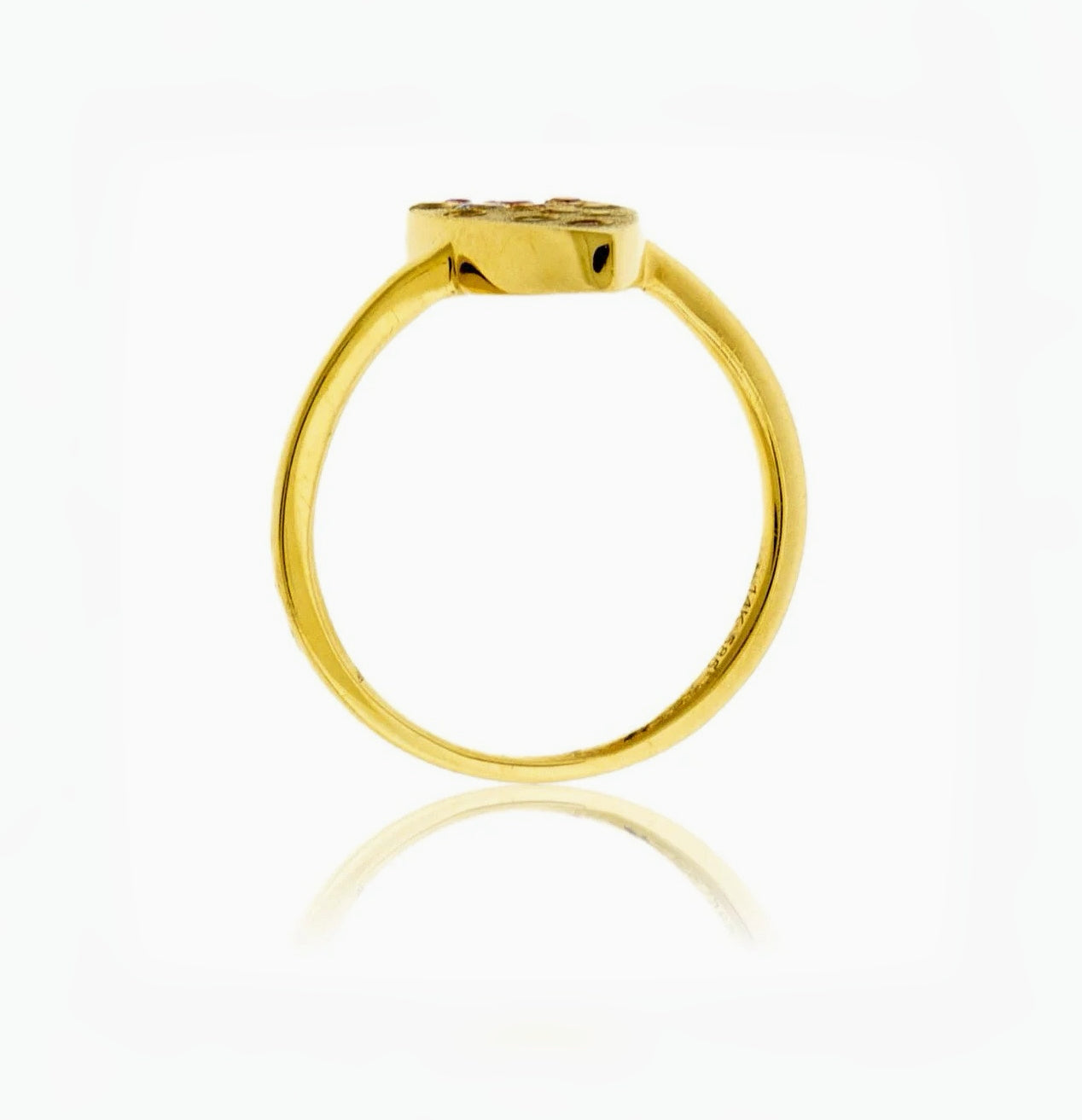 Each gem is meticulously flush-set across the surface, creating a playful scatter of color that glows like morning light through rain. Its slender gold band and refined profile make it ideal for stacking, layering, or wearing as a stand-alone statement piece.